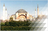Původní výzdoba celého chrámu je především mozaiková. Ze zachovaných mozaik jsou nejznámější mozaiky Ježíše s Konstantinem IX a Zoe a Matka Boží s Janem II a Eirené. Naprosto nepřehlédnutelné jsou obrovské kruhové tabule se svatými jmény Boha (zde samozřejmě rozumíme Alláha), Proroka, čtyř chálífů a Mohammedových vnuků. Z tureckých památek zde najdeme ještě mihráb (modlitební prostor) a obrovský svícen, dar sultána Sulejmana I. Zajímavé je, že tento svícen byl vyroben v Maďarsku. Velký bazar Turecky Kapali Carsi, je vlastně obrovský trh pod jednou střechou. Téměř 4 000 malých krámků se tu tísní jeden vedle druhého, z toho polovina patří zlatníkům. Každé řemeslo má svoji "ulici", které jsou pravidelně uspořádány do pravých úhlů. Nakupovat zde můžete -kromě neděle- od 8. do 19. hodiny. Kromě tohoto bazaru je v Istanbulu množství velkých i menších bazarů. Známý je též Egyptský bazar (Misir Carsisi), zvaný též bazar s kořením. I zde si přijde na své zrak i čich, pytle s barevným kořením, jehož jméno a použití ani mnohdy neznáme, střídají krabice orientálních sladkostí, které můžete ochutnat. Blízko je též Knižní bazar, který je sice menší, ale má rozhodně svůj zvláštní půvab. Kdo rád chodí do antikvariátů, neměl by toto místo vynechat. Palác TopKapi Má pro Turecko a jeho obyvatele stejný význam jako pro Čechy Pražský hrad a Vyšehrad dohromady. Toto sídlo tureckých sultánů leží na poloostrově mezi Marmarským mořem a Zlatým rohem na ploše asi 700.000 m2. Jedná se o velký komplex paláců, pavilonů, mešit, fontán a nádvoří. TopKapi od svého vzniku až do roku 1839 bylo oficiálním sídlem tureckých sultánů, až teprve Abdulmecit I. si nechal na břehu Bosporu vybudovat sídlo nové, nádherný empírový palác Dolmabahce. V době největší slávy zde pracovalo na 4 tisíce lidí. Jerebatanské cisterny