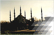 | Modrá mešita Správněji mešita sultána Ahmeda, stojí v samém centru Istanbulu, naproti chrámu Haghia Sophia. Své druhé jméno Modrá mešita dostala podle modrozelené výzdoby. Modrá mešita je jediná mešita na světě se šesti minarety. Platí totiž pravidlo, že běžná mešita má jeden minaret, lepší může mít dva minarety, ale šest minaretů smí mít pouze mešita v Mekce. Význam Modré mešity pro Turecko můžeme srovnat s významem chrámu sv. Víta pro náš národ - jedná se o nejvýznamnější náboženskou stavbu v zemi. Zde se konaly všechny důležité náboženské obřady, slavily svátky a odsud také vyráželi poutníci na hadždž (svatou pouť) do Mekky.