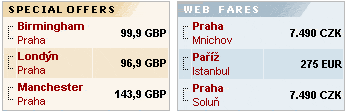 Kliknut�m na destinace s cenou ve Speci�ln�ch nebo �SA Web Fares se V�m zobraz� p��mo vybran� sm�rov�n� a kalend��e s mo�nostmi odletu a n�vratu.