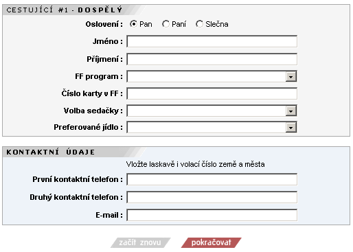 Vyplňte co nejvíce údajů a nezapomeňte na číslo frequent flyer programu ČSA OK Plus nebo jeho partnerů z aliance SkyTeam a dalších. Pokud nejste ještě členem, máte možnost se nyní přihlásit on-line a těžit z jedinečných výhod tohoto programu. Jméno cestujícího musí být uvedeno přesně tak, jak je na Vaší kartě OK Plus, aby Vám bylo možno automaticky přičíst míle za Váš budoucí let.